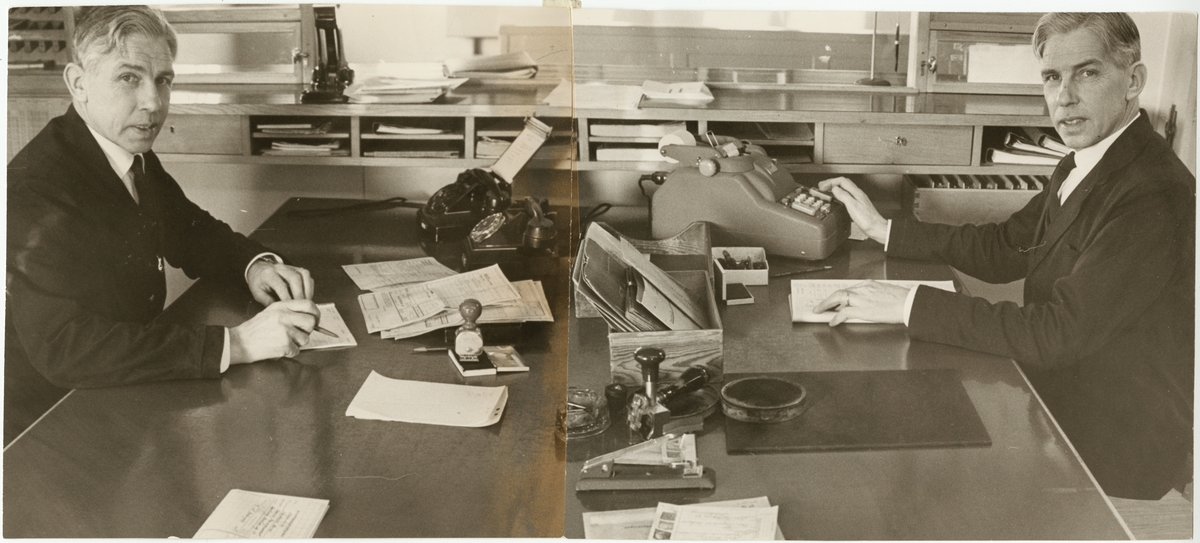 Folke Karlsson dubbelarbetar som stationschef och bygdens postmästare i Strömsholm 1962.