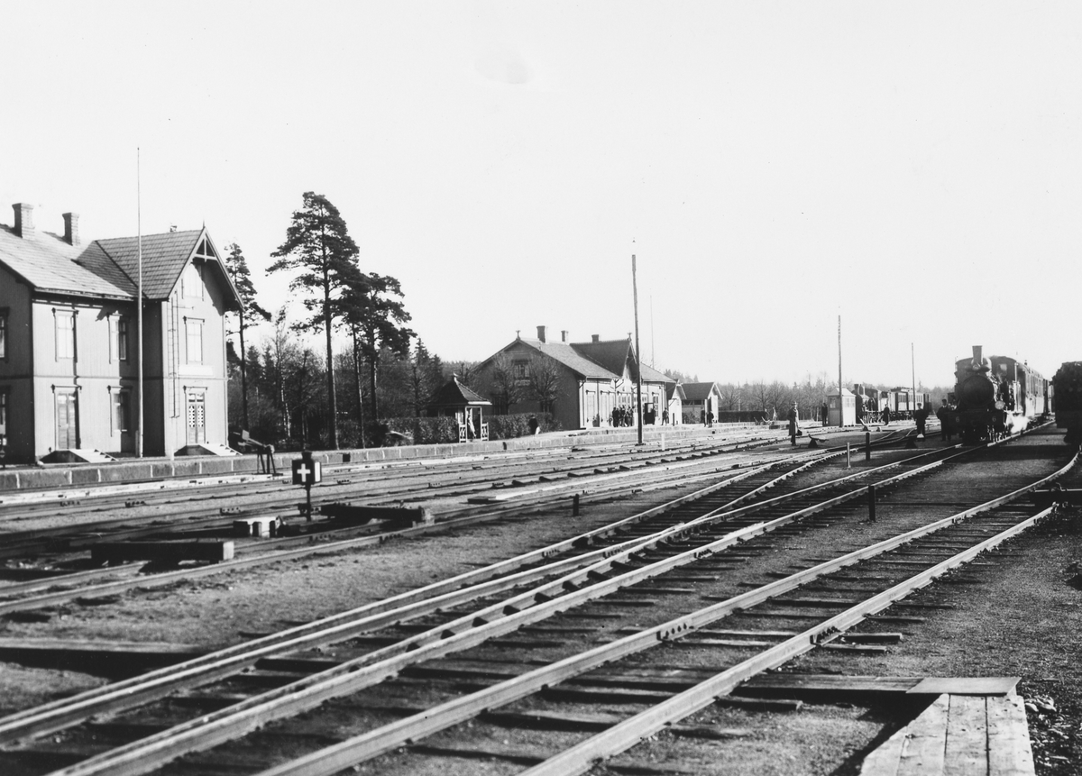 Bangården vid Bäckefors station. Uddevalla - Lelångenbanan, ULB lok 6.