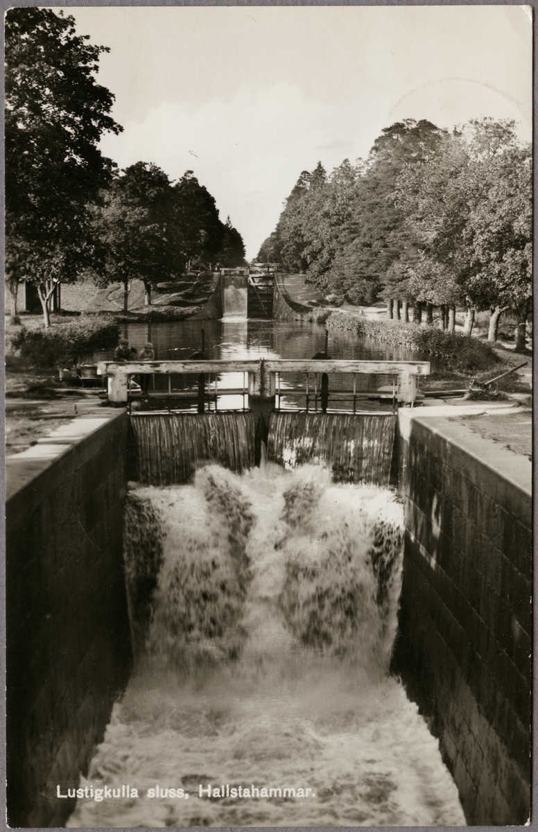 Titel: Tre pojkar vid bron vid Lustigkullaslussen.