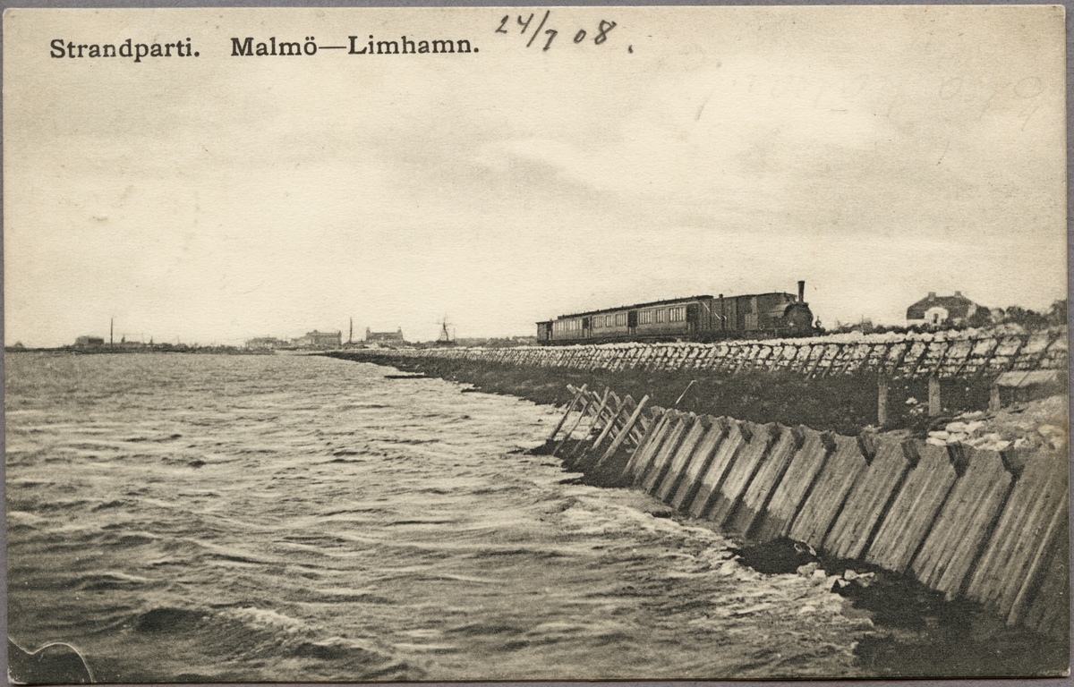Titel: Persontåg på järnvägslinjen mellan Malmö och Limhamn.