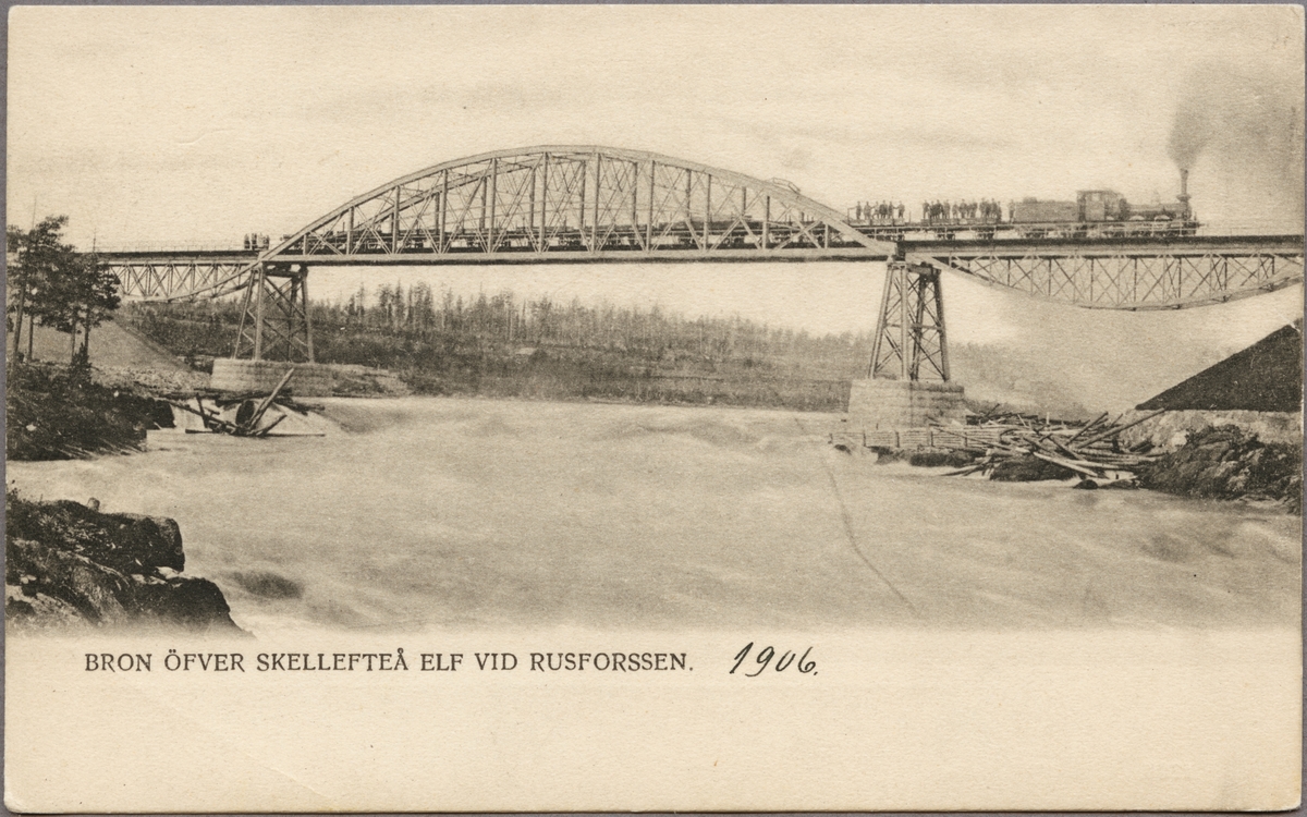 Järnvägsbro över Skellefteälven vid Kusfors på linjen mellan Jörn och Bastuträsk. Statens Järnvägar, SJ Kc 305 "Vanland".
