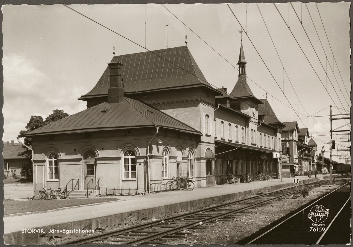 Titel: Spårsida av station med cyklar och perrong.