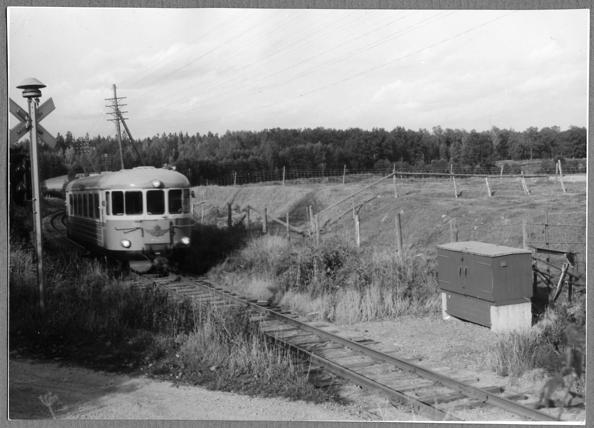 Motorvagnståg från Västervik till Hultsfred passerar Rödsle ringverk, på sträckan mellan Jenny och Verkebäck.