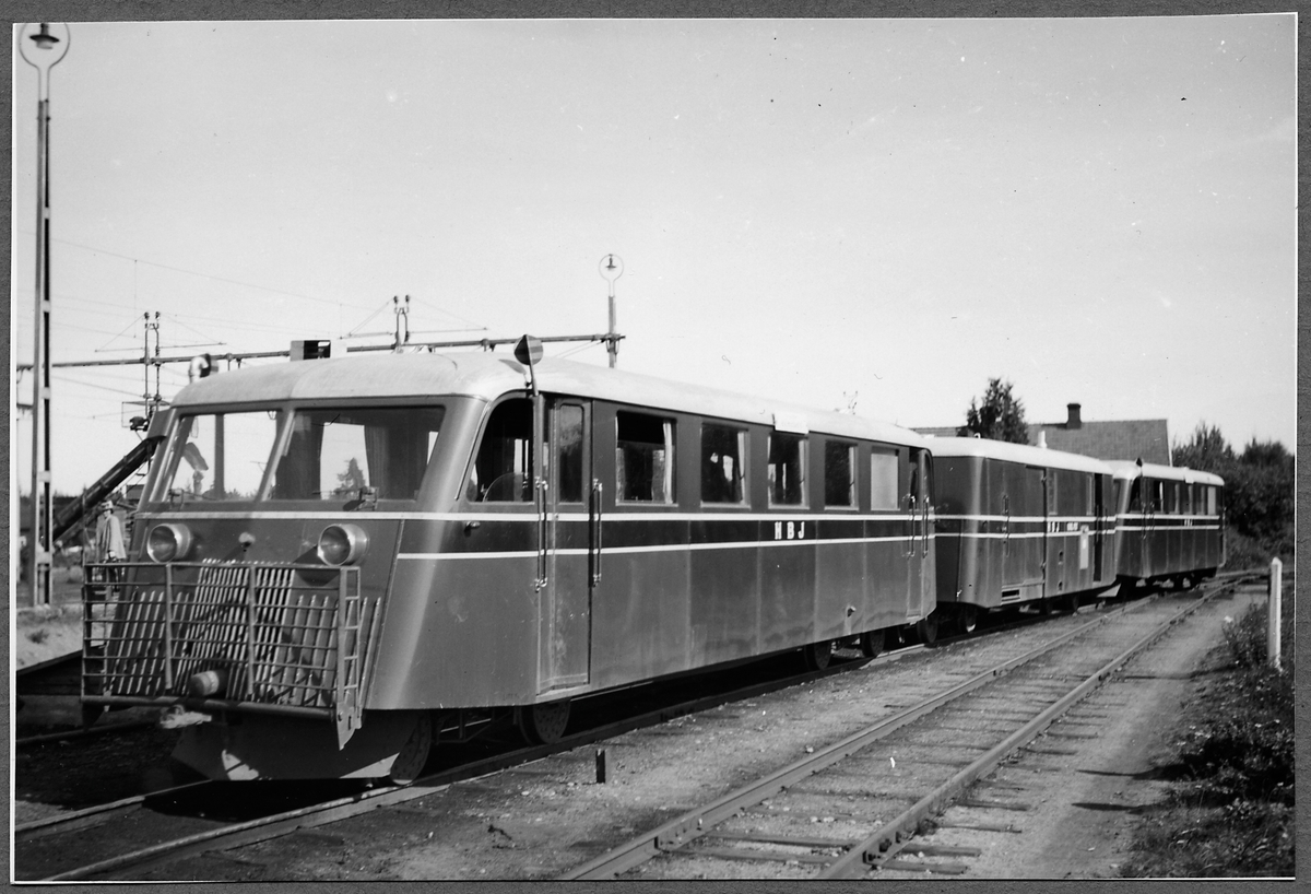 Halmstad - Bolmens Järnväg, HBJ motorvagn 22, HBJ motorvagn 23 och HBJ motorvagnssläp 101.
