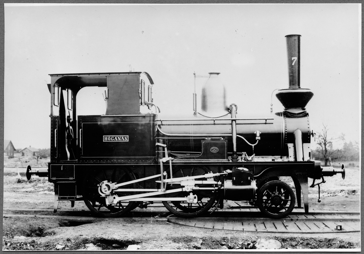 Leveransfoto, Skåne Halands Järnväg, SHJ lok 7 "Höganäs", tillverkat 1884 av Nohab. 1896 såldes loket till Statens Järnvägar och fick littera SJ VKBi 501. Det skrotades 1935.