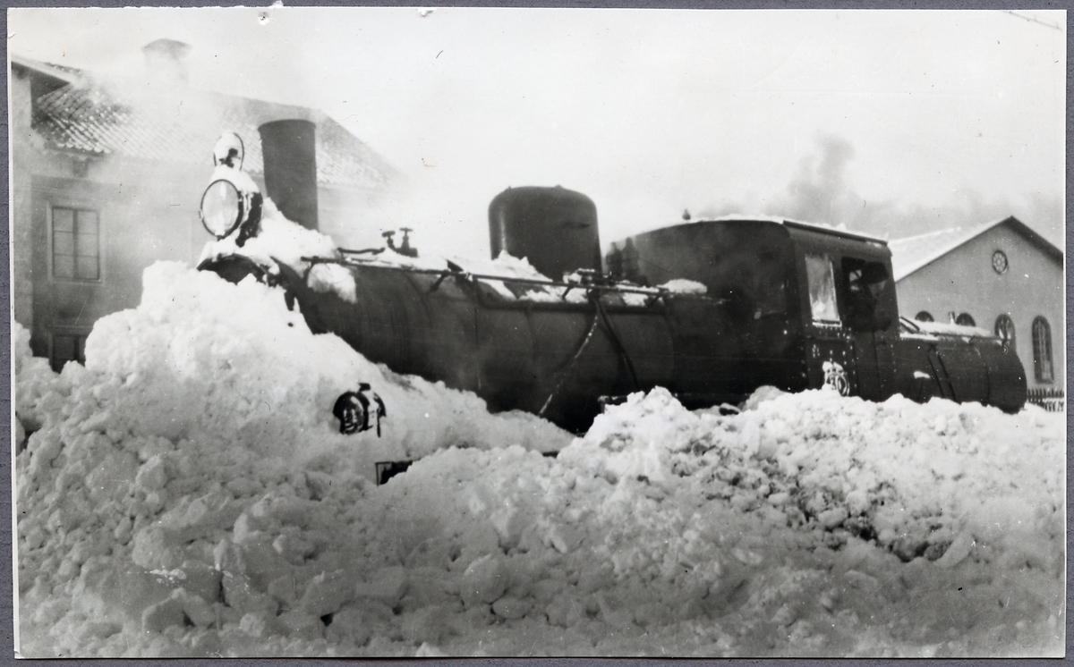 Norsholm - Västervik - Hultsfreds Järnvägar, NVHJ lok 30 i snömassorna efter ett vinteroväder.