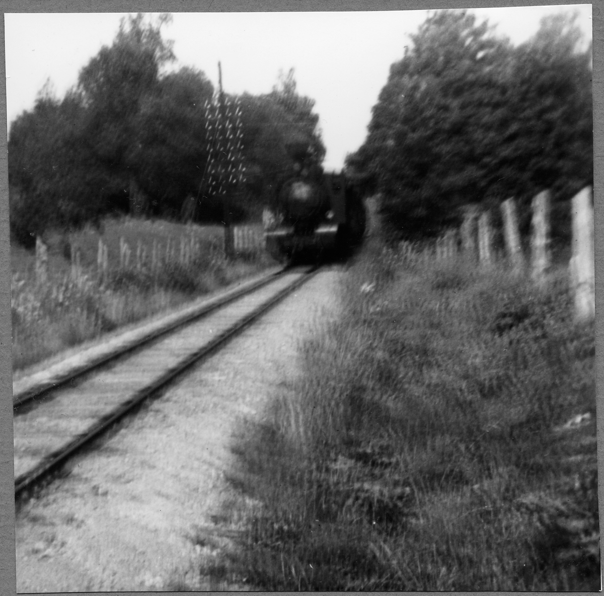 Titel: Persontåg n:r 1 passerar Falkhagen på linjen Gamleby-Almvik .