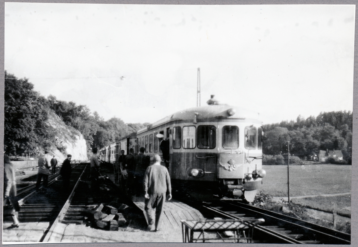 Första persontåg på normalspår anländer till Överums station från Linköping.