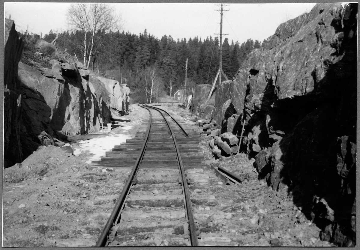 Titel: Slutpunkten för första årets breddning av smalspår. På linjen mellan Storsjö och Blidstena.