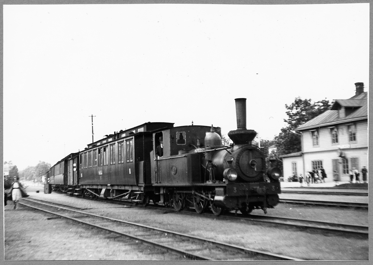 Ångtåg vid Vetlanda Station. Vetlanda-Sävsjö järnväg, HvSJ lok 3 "Sten Sture".