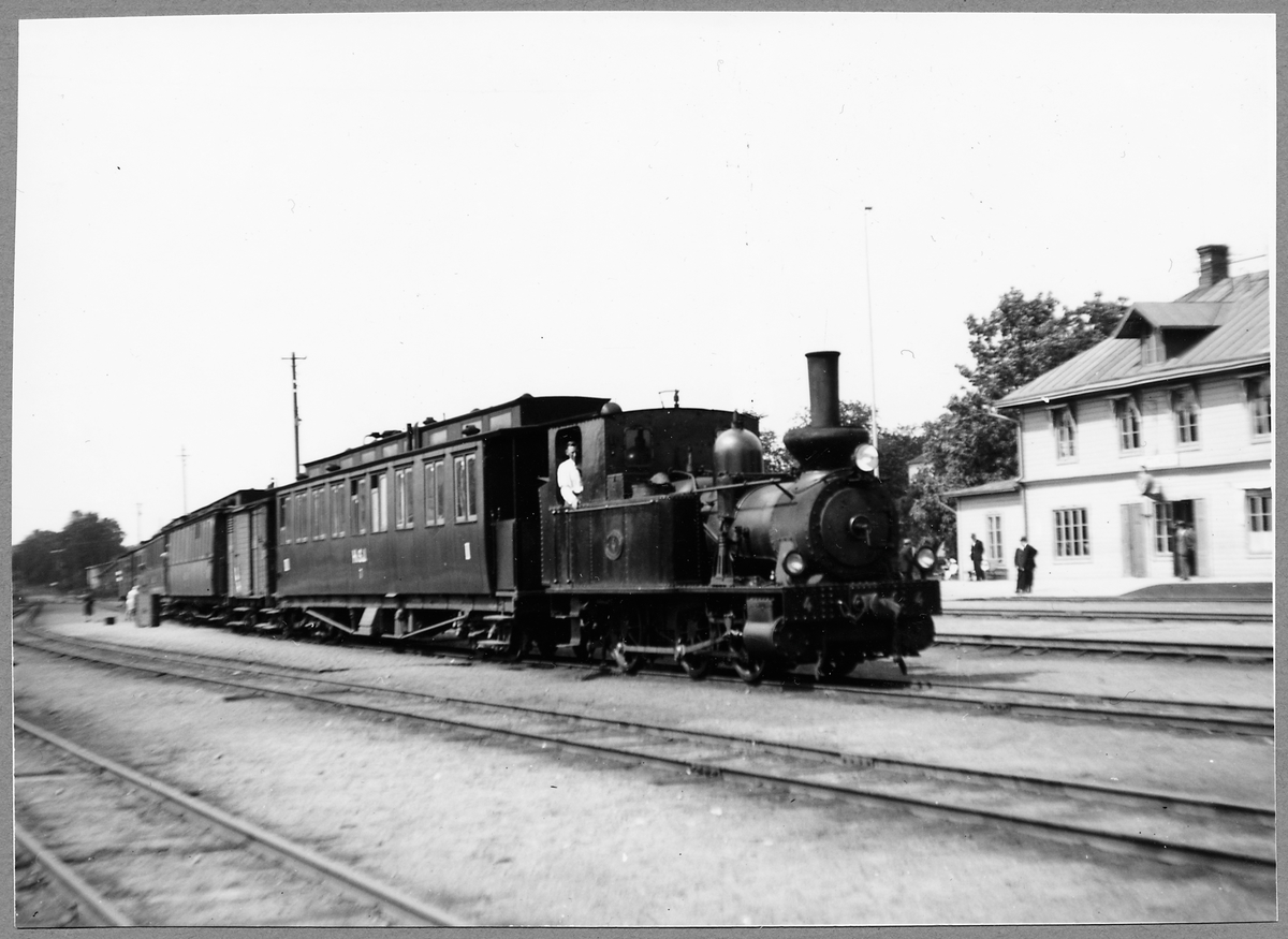 Ångtåg vid Vetlanda station. Vetlanda-Sävsjö järnväg, HvSJ lok 4 "A.Wilh. Petri".