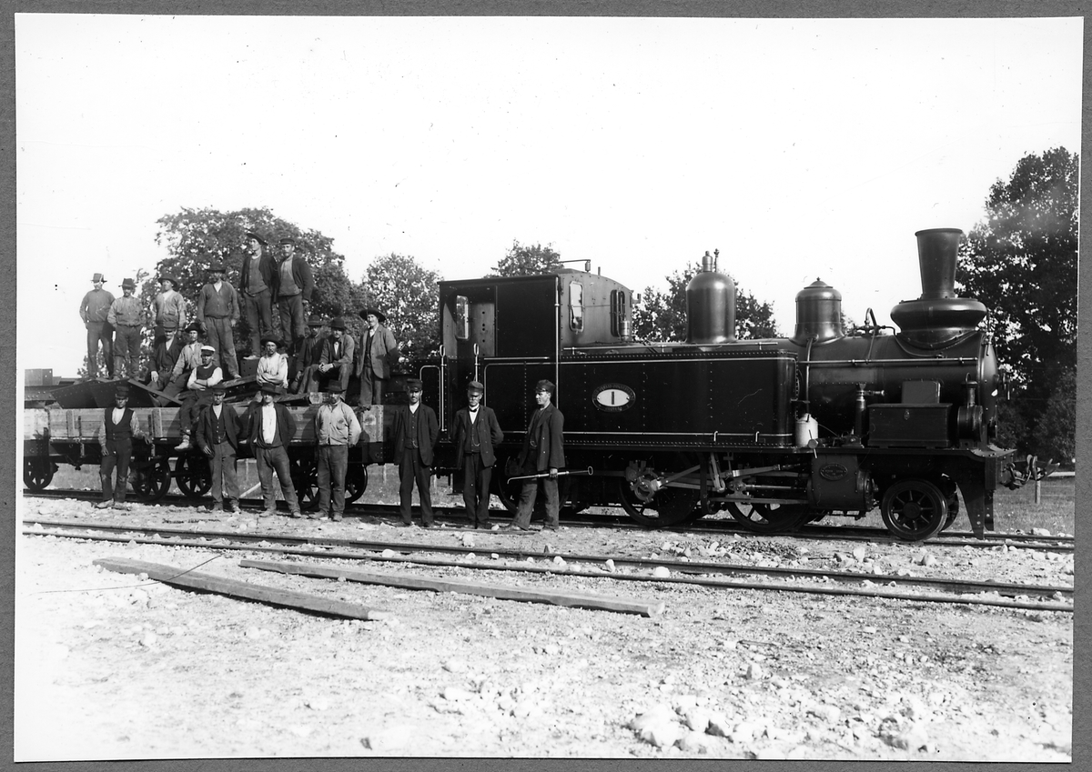 Anläggningsarbete. Ruda-Oskarshamns Järnväg, ROJ lok 1.