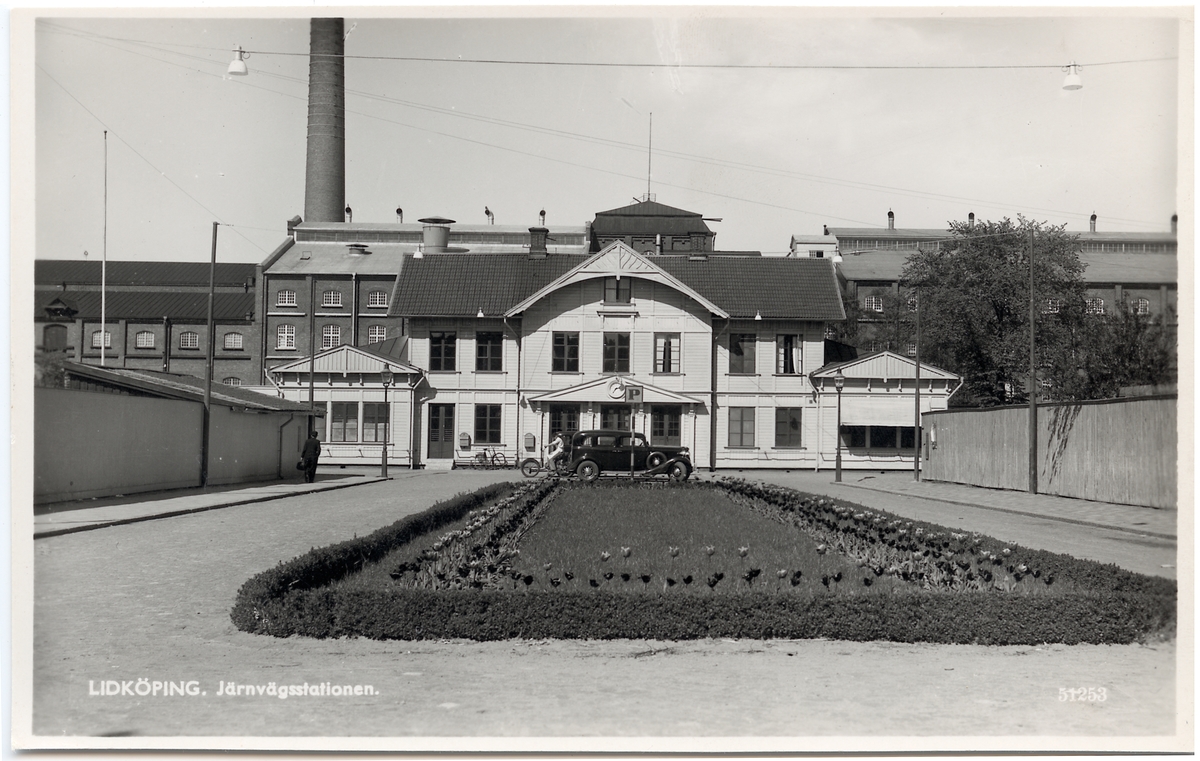 Titel: Lidköping-Kållands Järnväg. Vy från Lidköpings Järnvägsstation i slutet av 1930.