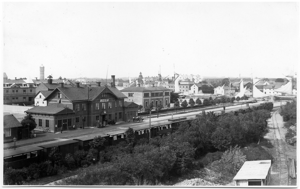 Titel: Lidköping - Håkantops Järnväg sommarvagnar vid Lidköpings Järnvägsstation.