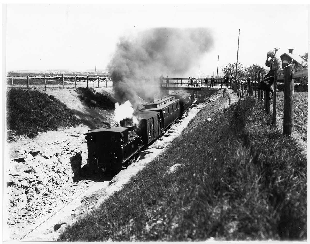 Skövde - Axvalls Järnväg, SAJ lok 2 vid viadukten i Våmb.