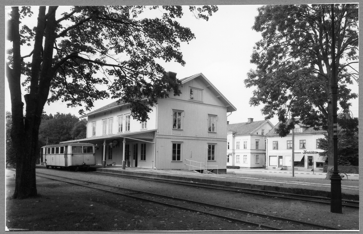 Statens Järnvägar, SJ motorvagnssläp vid Hjo station.