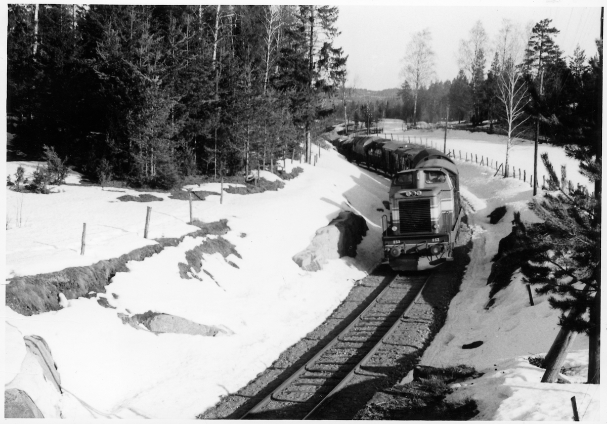 Godståg draget av Statens Järnvägar, SJ T43 233 i närheten av Blidstena.