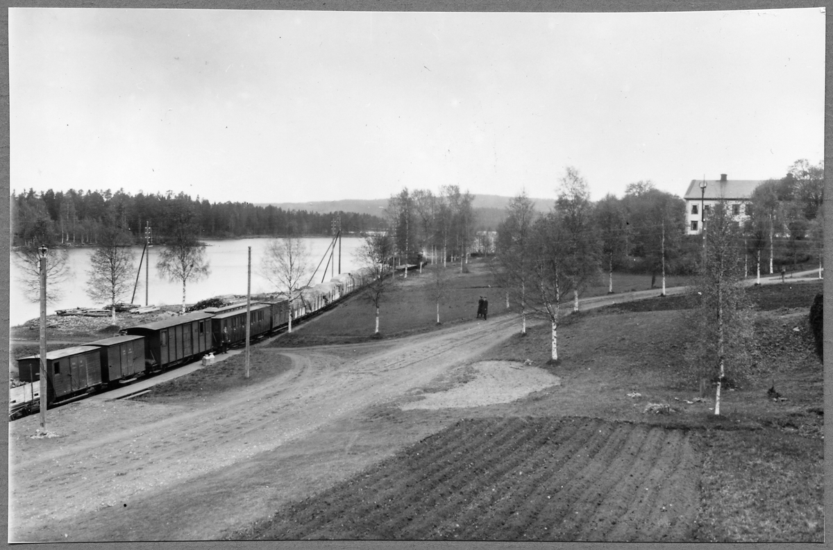 Titel: Blandat tåg lämnar Fredriksberg station på morgonen.