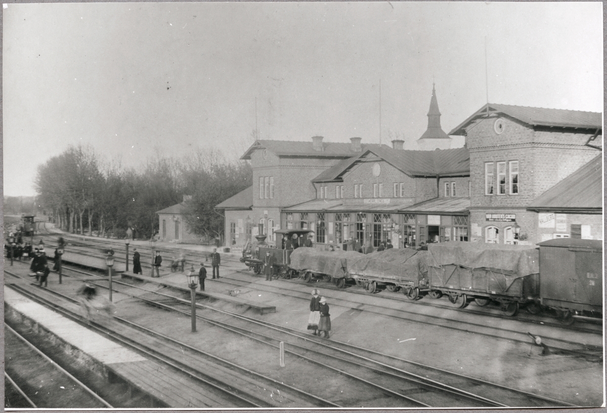 Borås-Herrljunga Järnväg, BHJ lok 6 med godståg vid Herrljunga station.