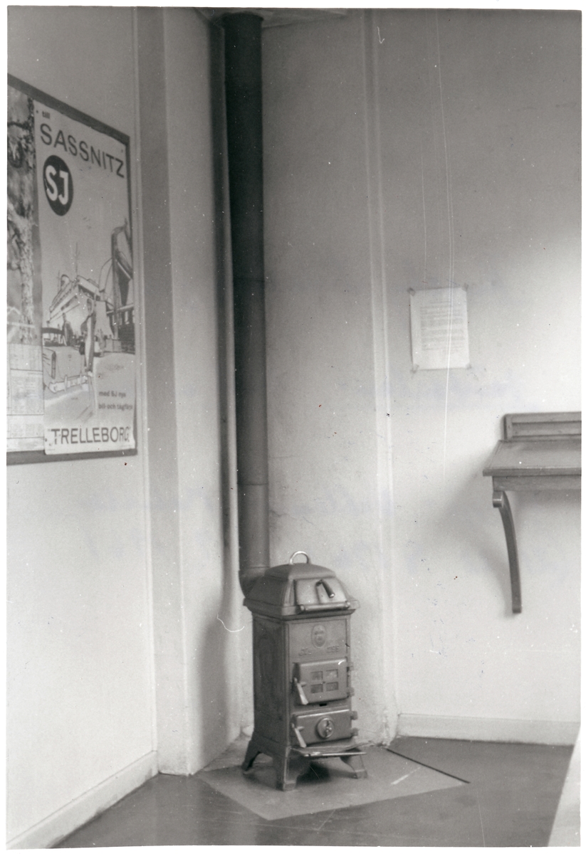 Del av väntsalen vid Flugeby station. Fotot taget strax före nedläggningen av bandelen Sävsjö-Vetlanda-Målilla, som skedde 1/9 1961.