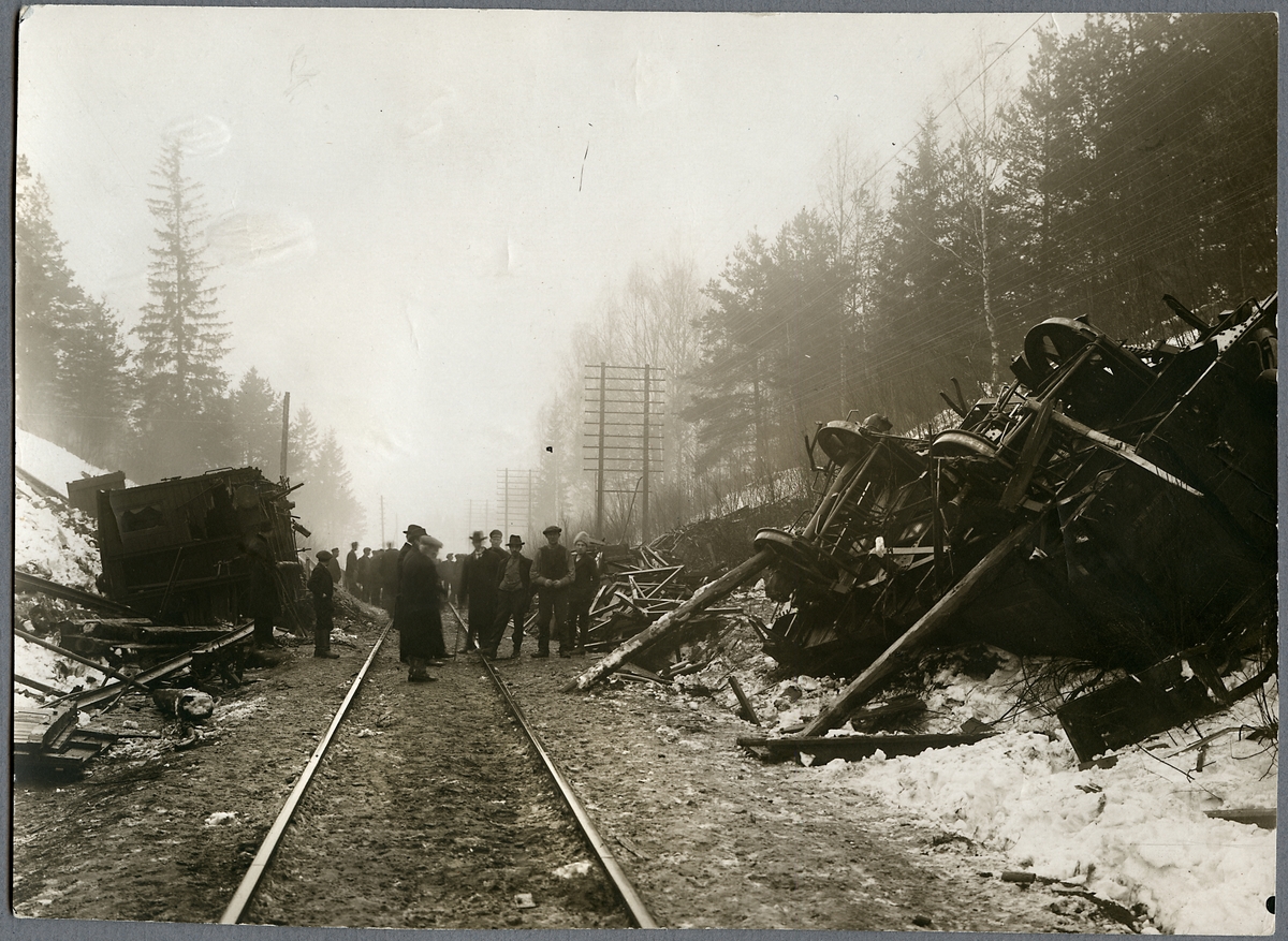Titel: Urspårade vagnar ligger på sidan av järnvägslinjen.