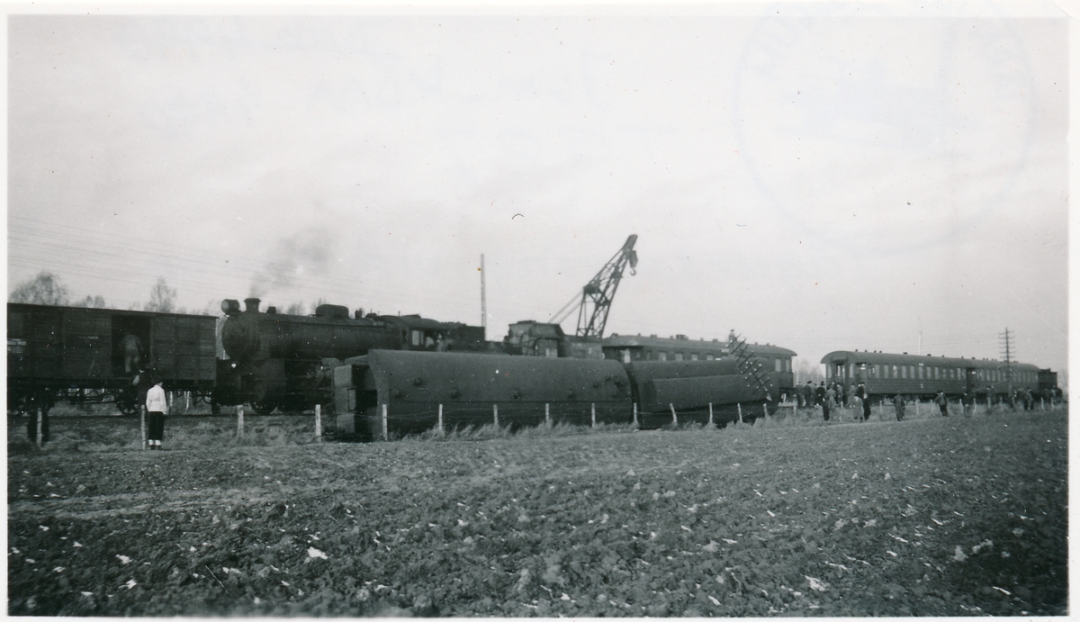 Trafikaktiebolaget Grängesberg - Oxelösunds Järnväg, TGOJ M3 50. Urspårning mellan Valskog och Köping annandag jul 1946.