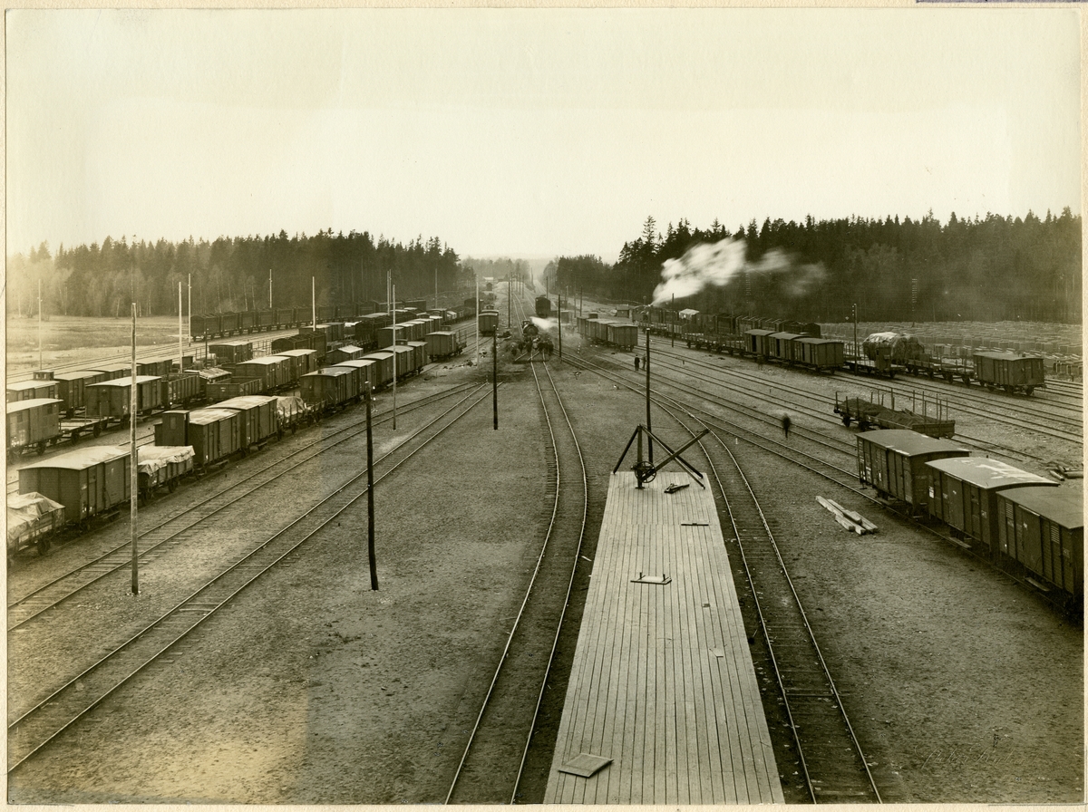 Utsikt från omlastningsmagasinets tak från väster utvisande de utfyllnads - och spårarbeten som utfördes 1917.