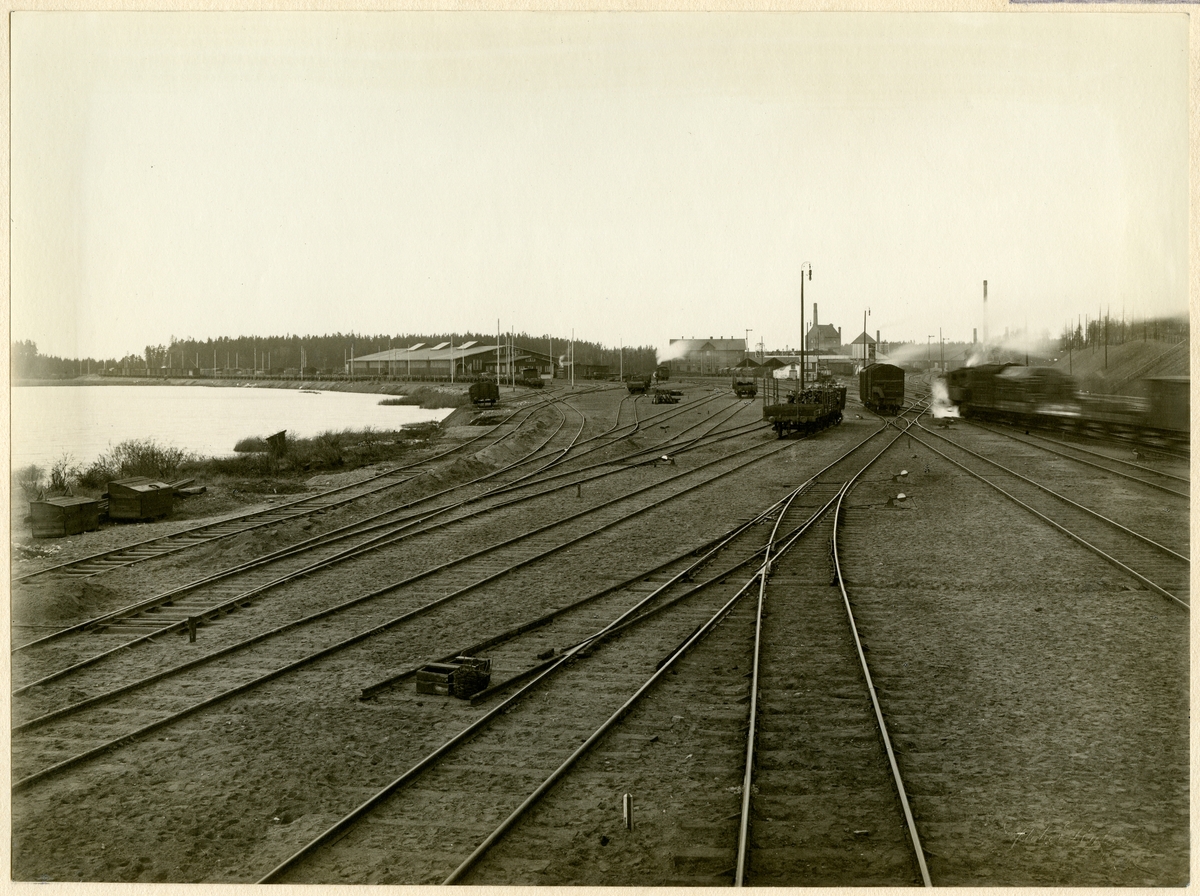 Nässjö, utsikt från bangården, mitt för Sikudden mot norr, utvisande utfyllnads - och spårarbeten utförda under år 1917.