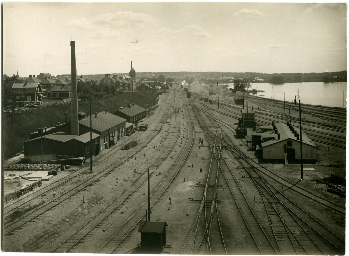 Titel: Norra delen av bangården med gasverket och manskapshuset.