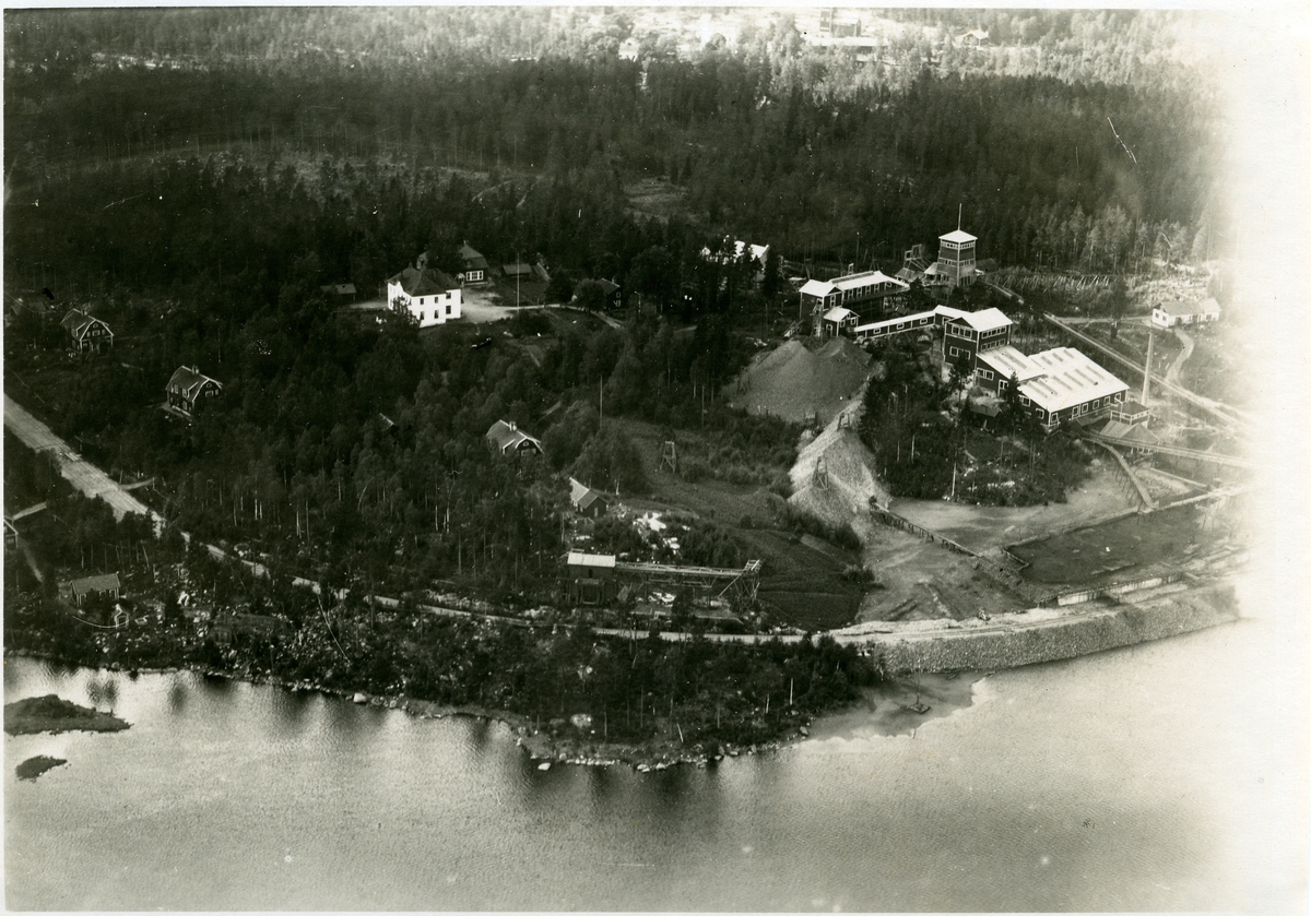 Flygbild över gruvindustrin i Riddarhyttan.