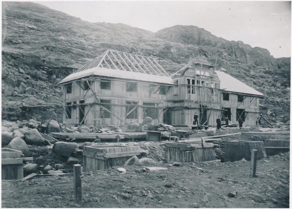 Titel: Riksgränsens stationshus under uppbyggnad.