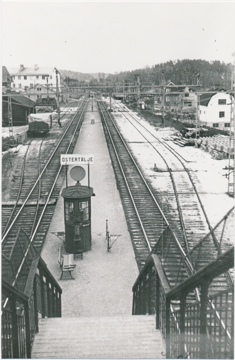 Österttälje station. Statens Järnvägar, SJ. Foto från viadukten över plattformen.