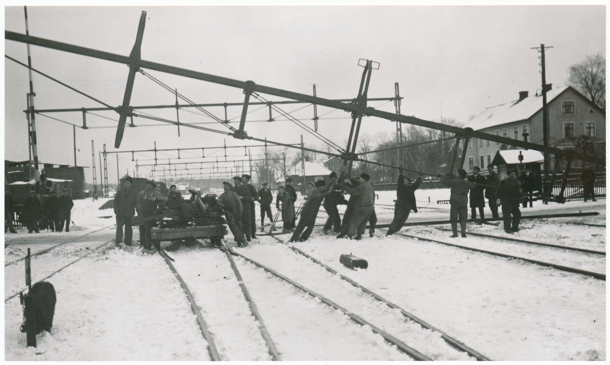 Titel: Bangården i Sävsjö under elektrifieringsarbetet mellan åren 1932-1933.