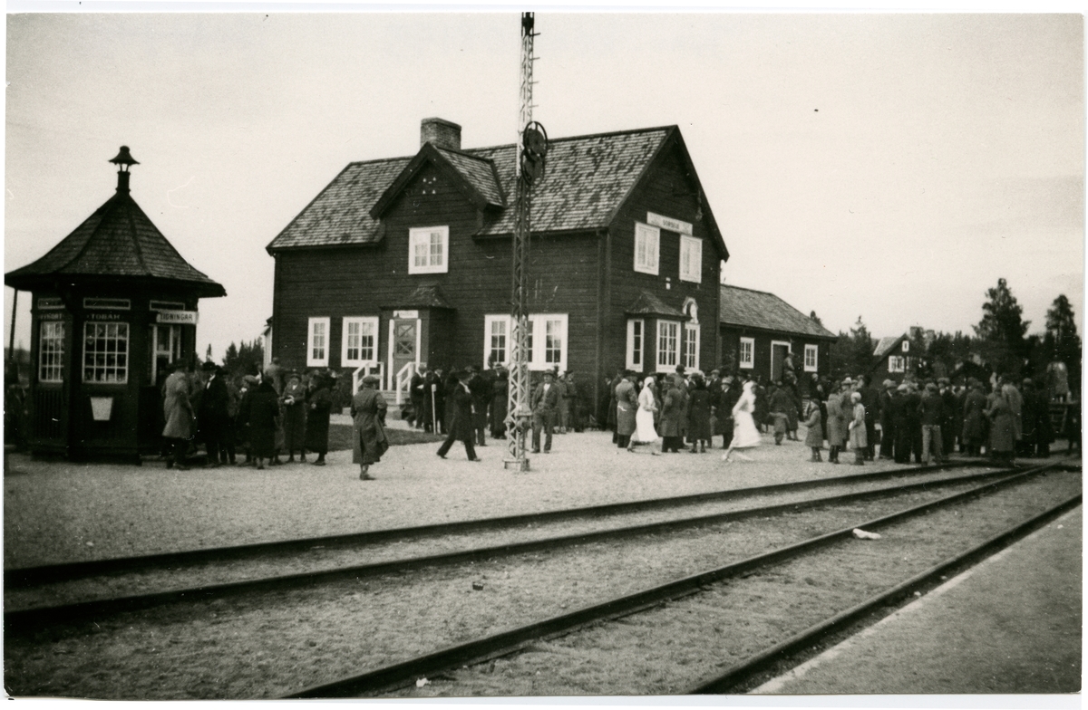 Sorsele station. Statens Järnvägar, SJ. Testtåget anlände till Sorsele station då bandelen Arvidsjaur - Sorsele öppnade för allmän trafik.