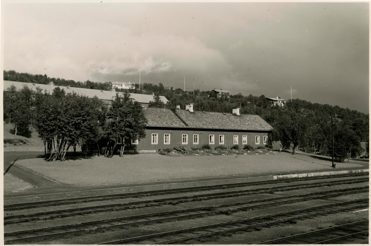 Titel: Gamla personal bostadshuset i Storlien med nyomlagd gräsmatta.