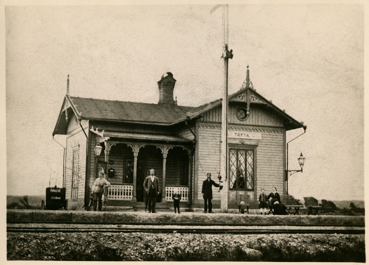 Varberg - Borås Järnväg, VBJ, En svart låda det står "Fotograf P. A. Eriksen."
