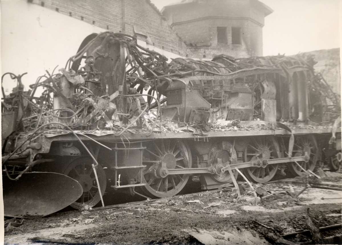 Titel: Från branden i Gällivare lokstall. SJ D 106. Lok på stallspår 14 sett från stall 15