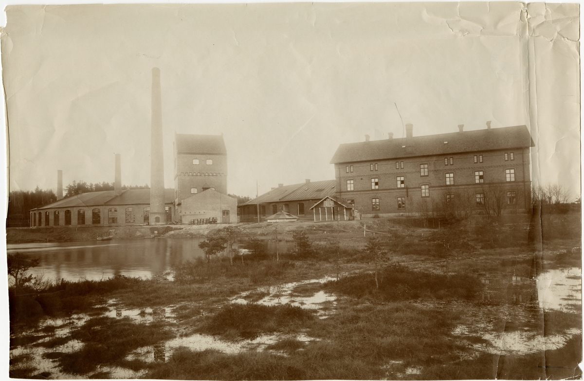 Nässjö exteriör af lokomotivstationen (totalvy af baksidan med ångcentral och öfverliggningshus).