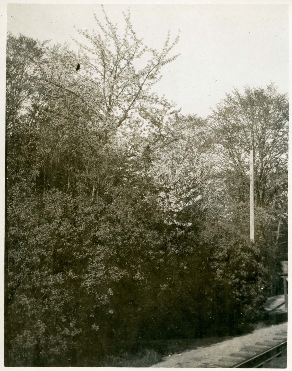 Titel: Körsbärsblom järnvägsblom järnvägsplantering.