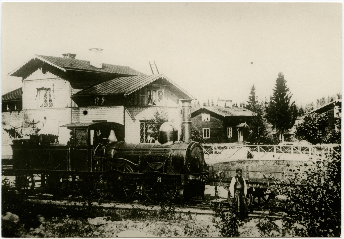 Gävle - Dala Järnväg, GDJ lok 4 "Norden". Mannen framför loket är Stationskarl Olof Walström.