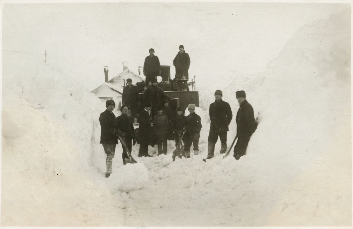 Titel: Personal framför den amerikanska snöplogen i Storlien.