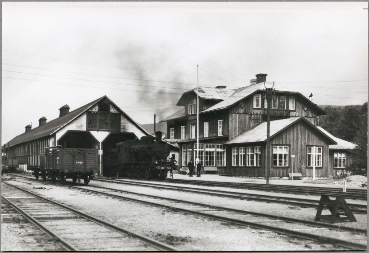 Godsvagn 3743 och Statens Järnvägar, SJ E 1125 vid Storlien station.