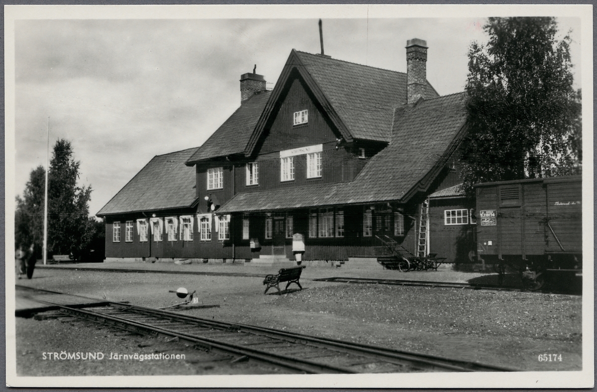 Titel: Strömsunds järnvägsstation med (SJ) statens järnvägars godsvagn SJ Gs 18174.