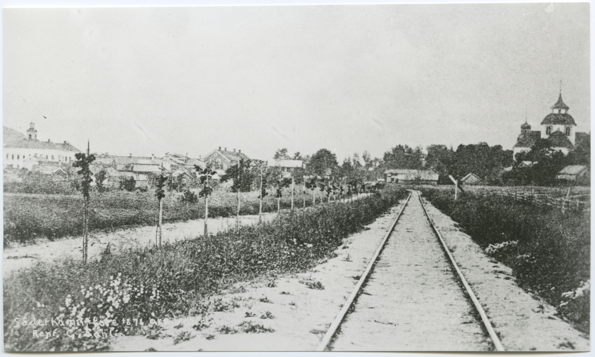 Söderhamns Järnvägsstation. Gamla banans linje inne i staden mellan Söderhamns station och"godsstationen".