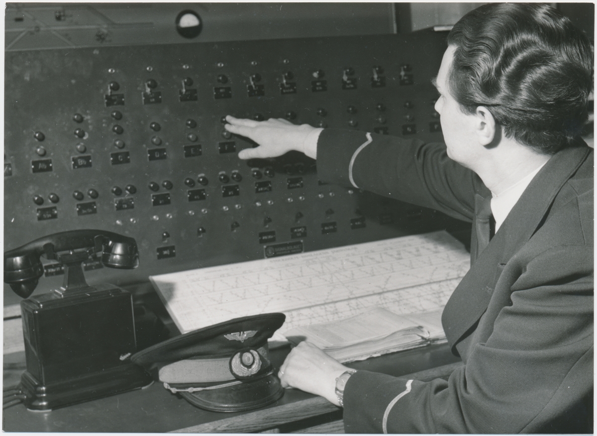 SRJ. Stins L. Hallin vid knappställverk på Stockholm Östra.