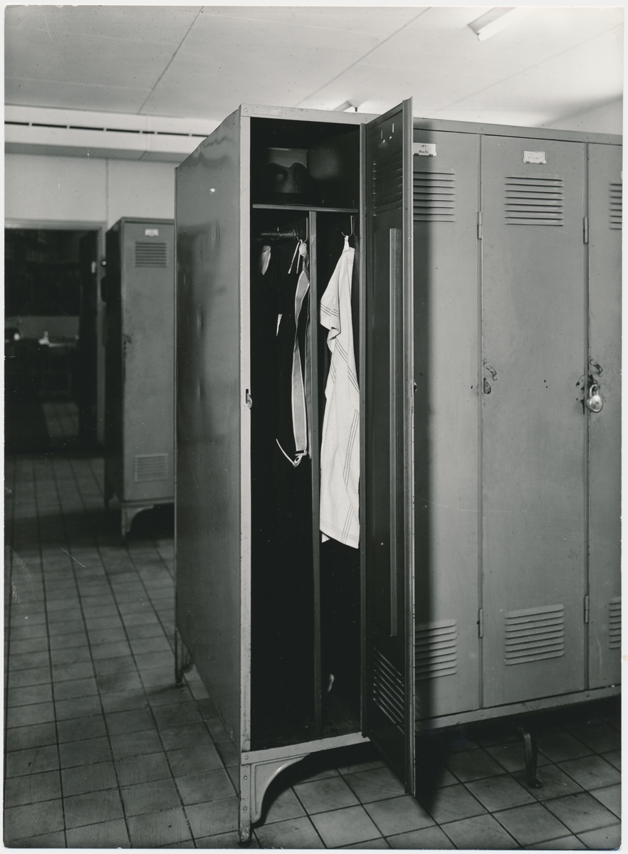 Klädskåp för verkstadspersonal.