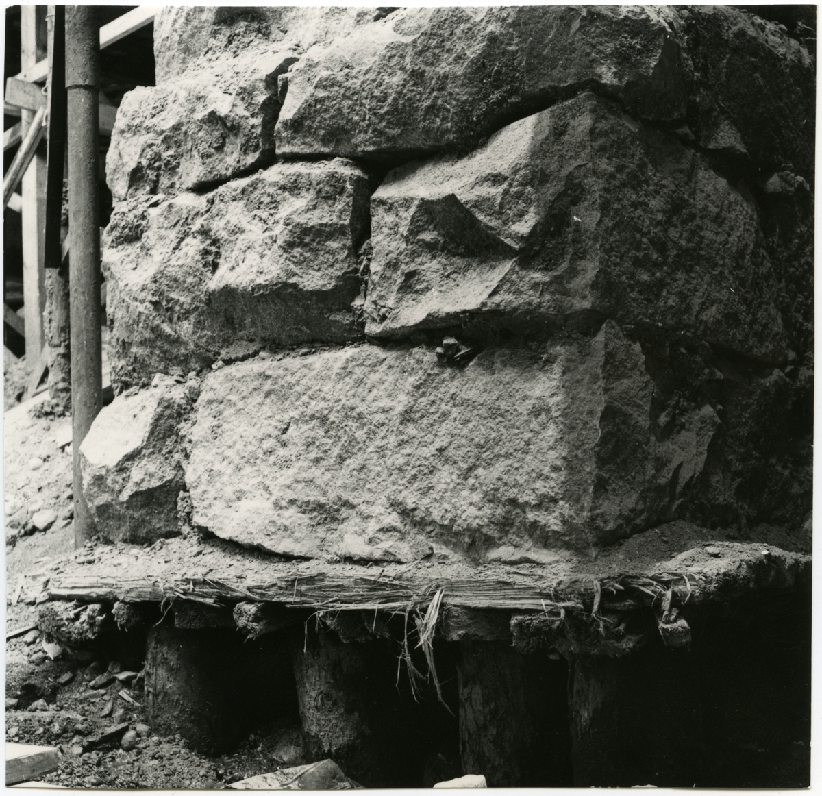 Statens Järnvägar, SJ, Stockholm centralstation ombyggnaden, pålning från slutet av 1860 talet. två pelare rensa gamla banhallen.