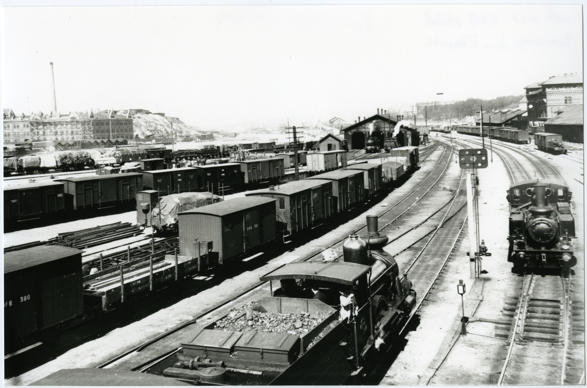 Stockholm - Västerås - Bergslagens Järnväg, SWB, Central stationen med SWB stallet reproduktion Negativ av Jan Ekeroth.