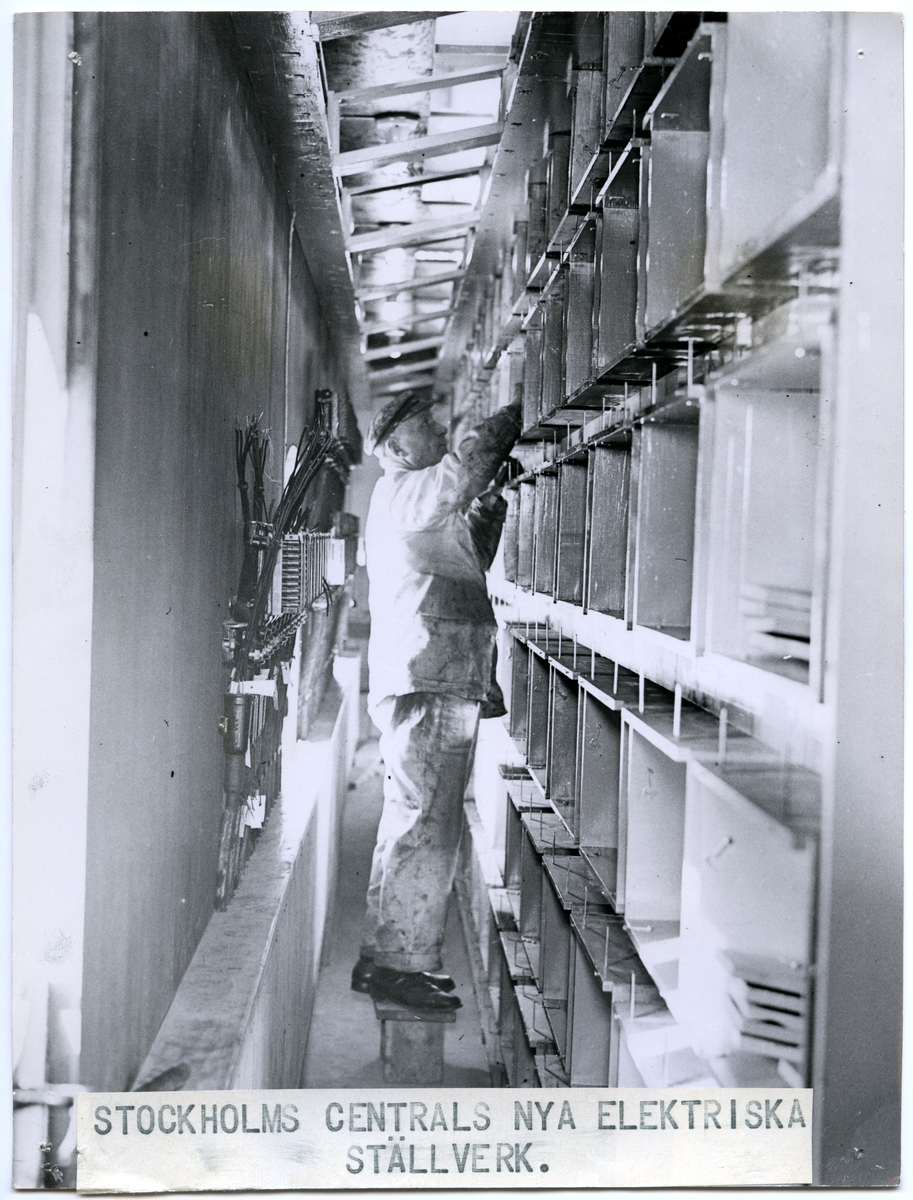 Elektriskt Ställverk. Interiör från centralbangårdens nya elektriska ställverk, där man nu bäst håller på med den elektriska installationen.