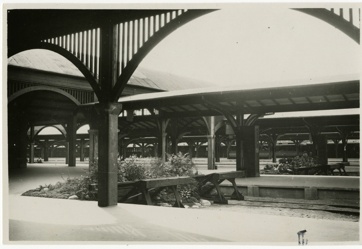 Titel: Stenparti vid stoppbockarna på Stockholms Central.